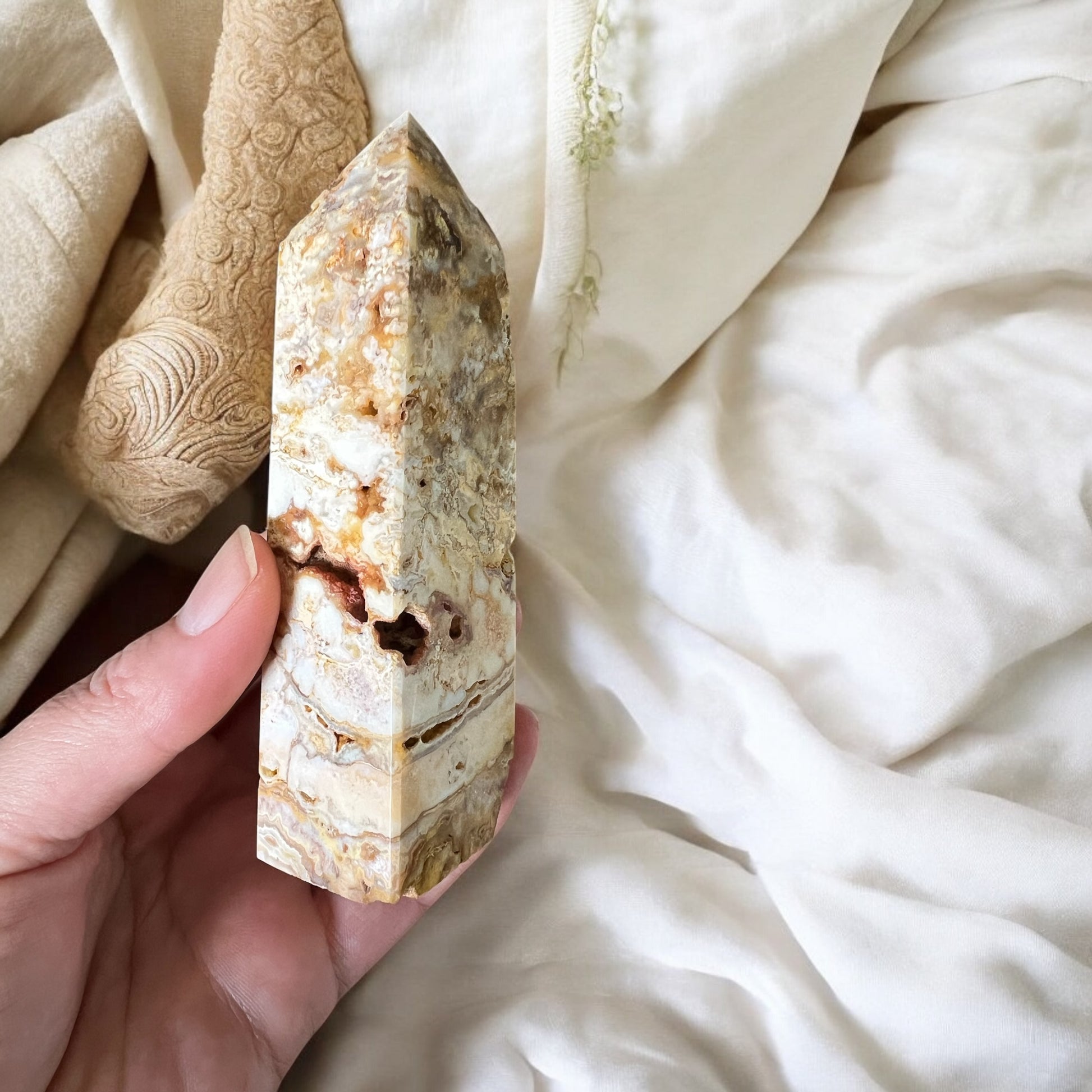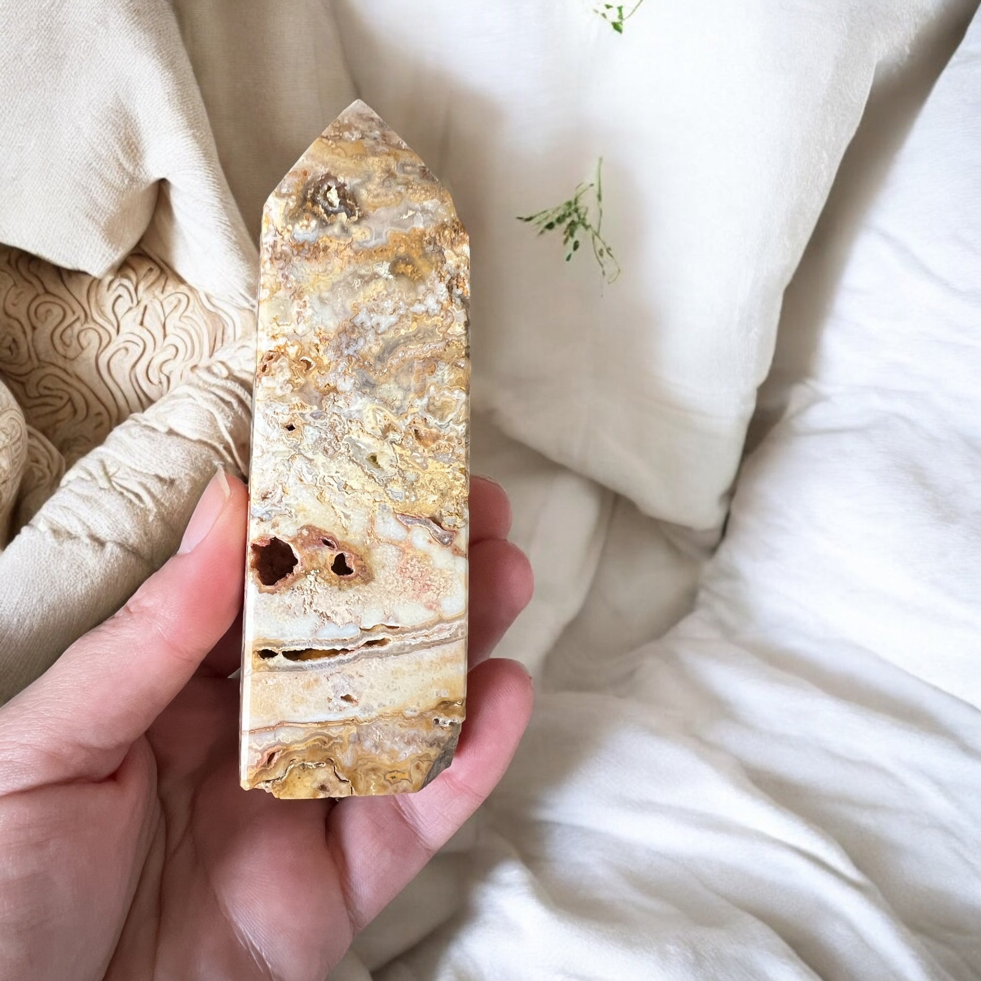 Crazy lace agate is often associated with bringing joy, happiness, and optimism into one's life