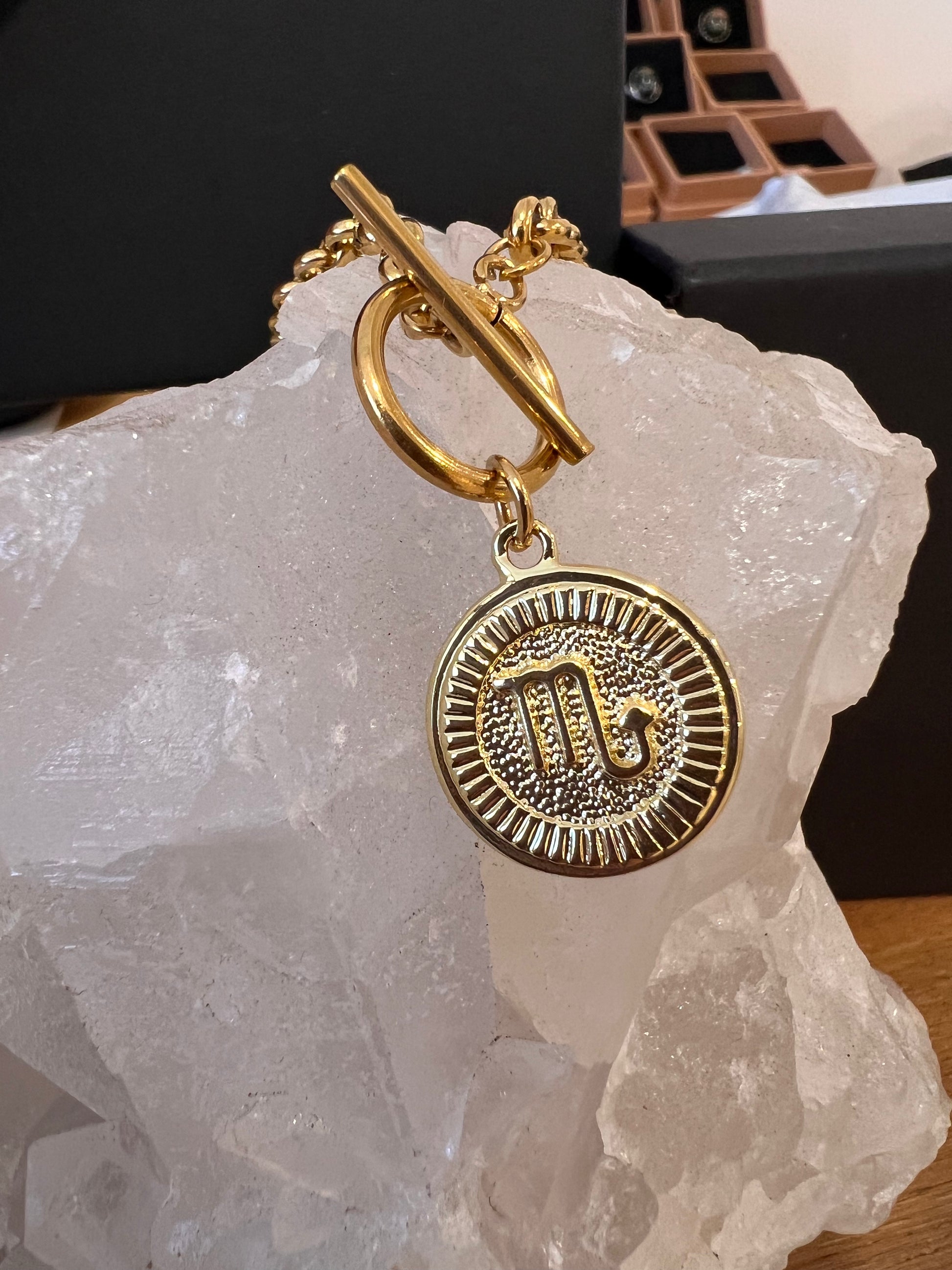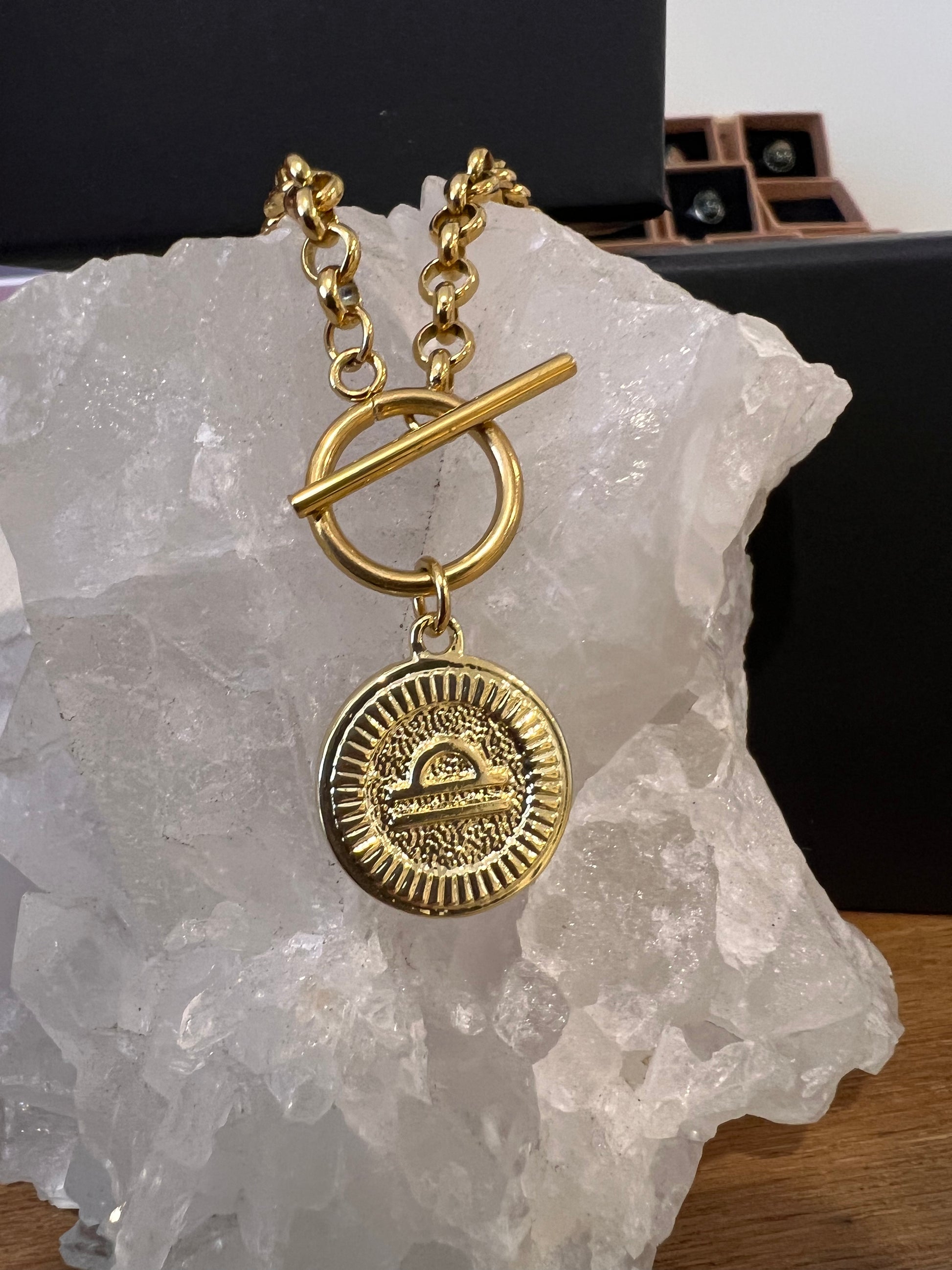 Gold plated stainless steel zodiac T-necklace